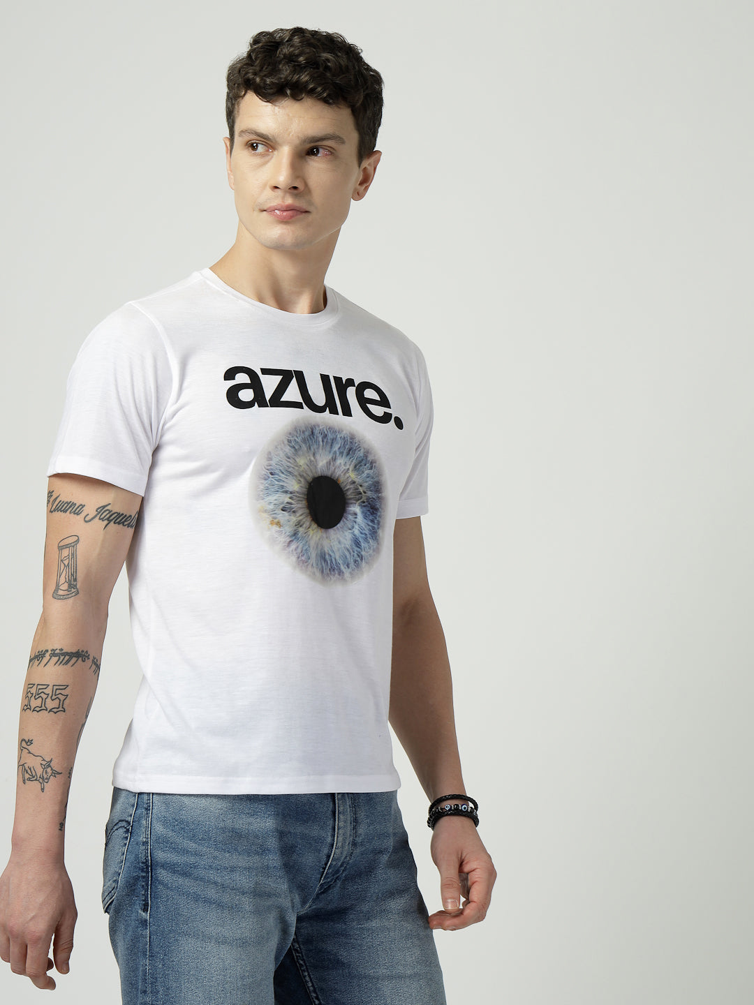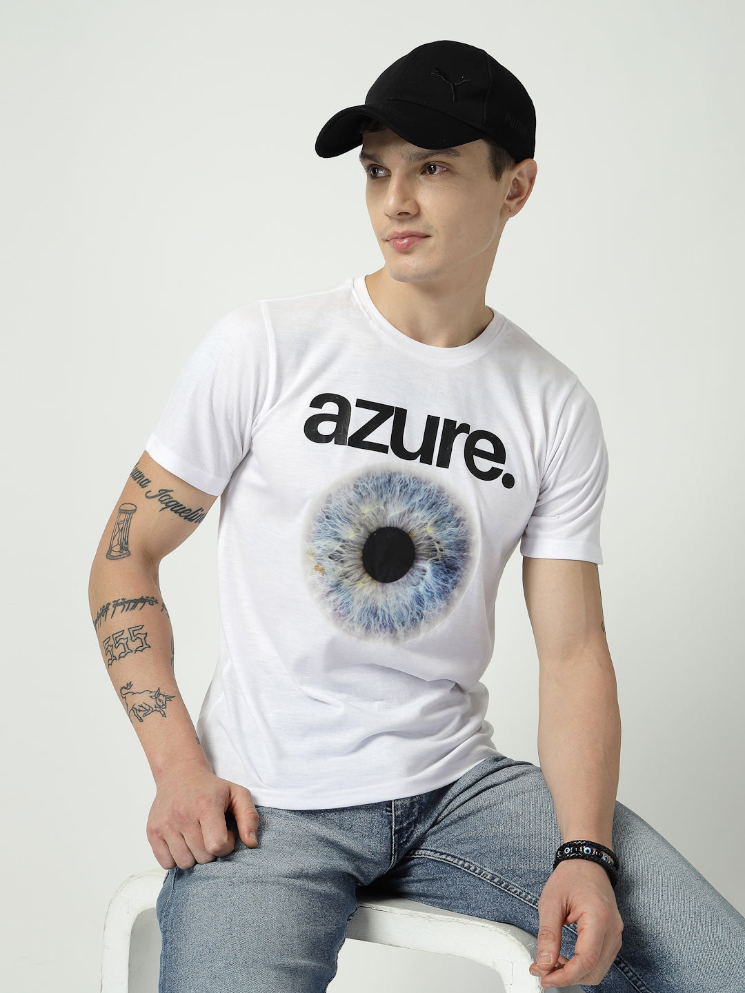 The Azure Vision T-Shirt captures focus, depth, and individuality in one bold frame — featuring a hyper-realistic blue iris print beneath the word azure. Crafted from premium soft cotton, this white tee balances minimal design with powerful expression.