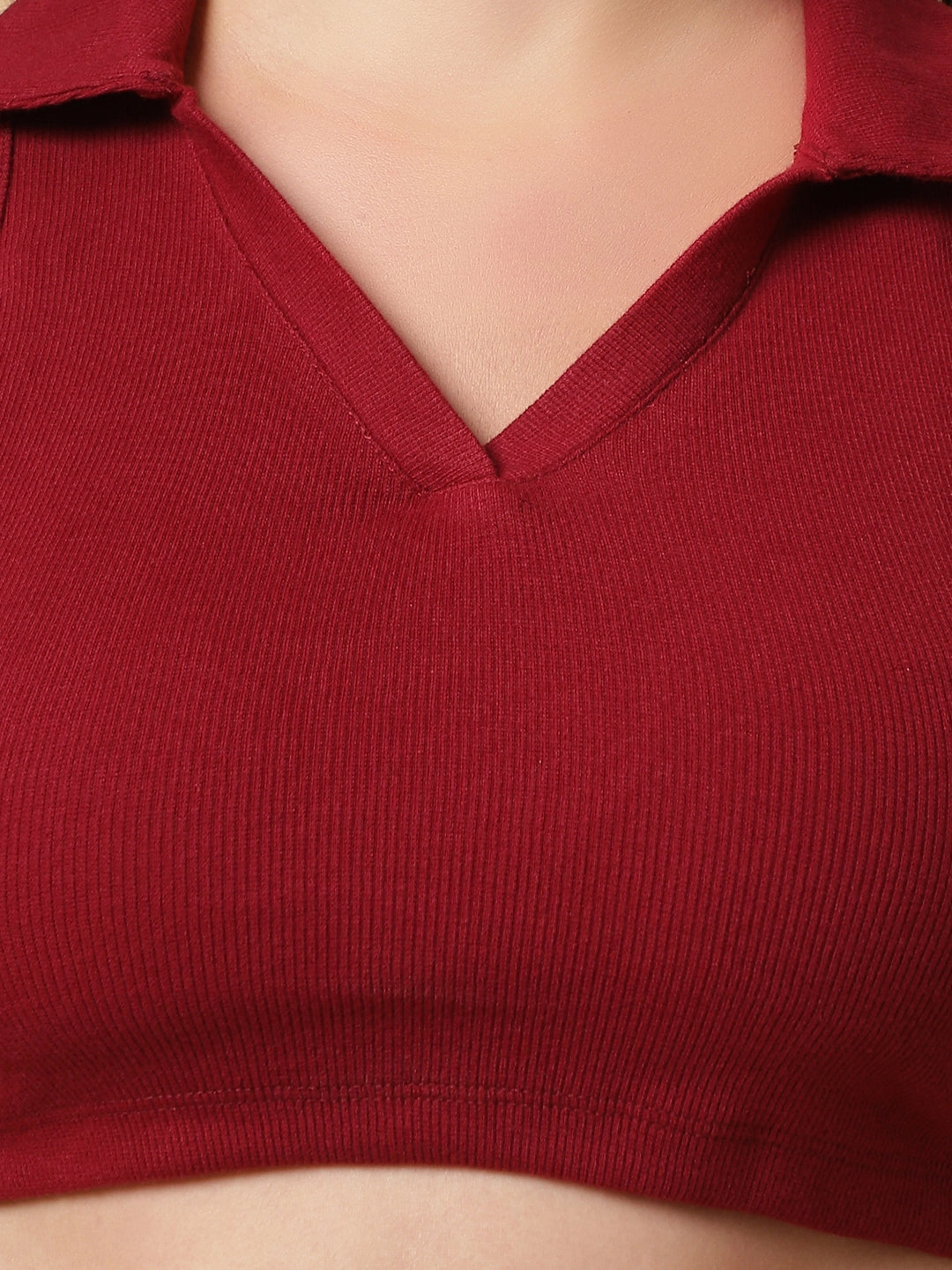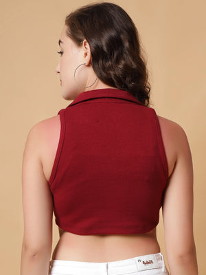 Collar Neck Sleeveless Ribbed Knit Crop Top