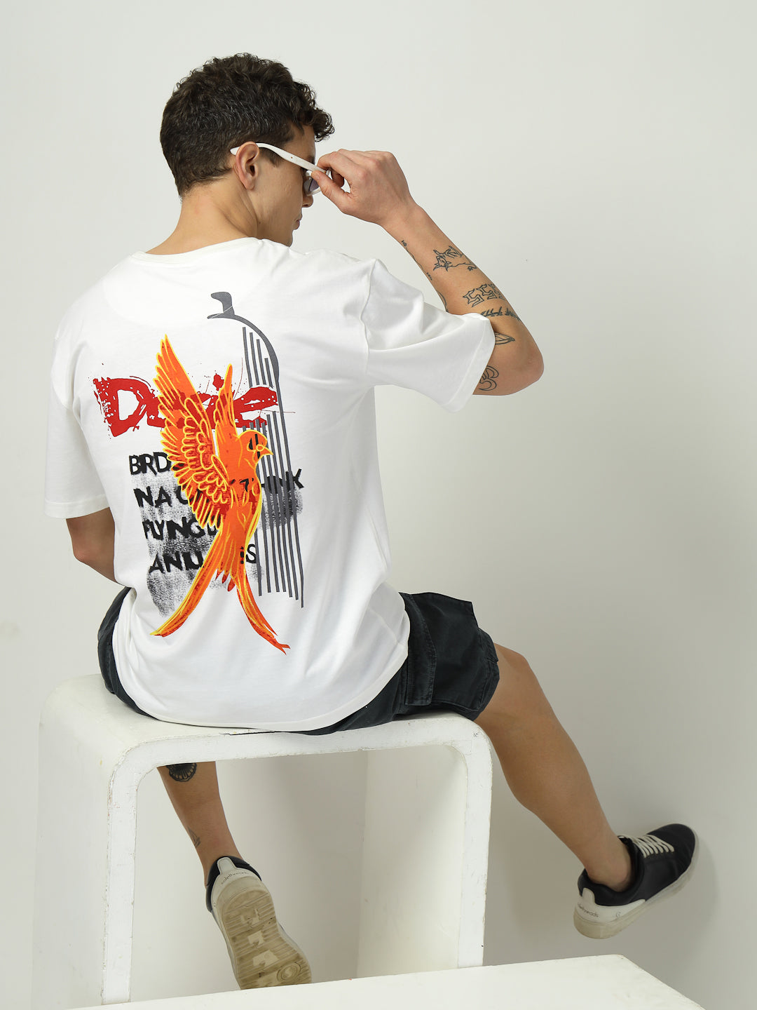 Crafted from premium, breathable cotton, this white tee features a powerful back print with a fiery wing graphic — a symbol of freedom, rebellion, and fearless expression.