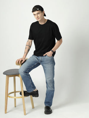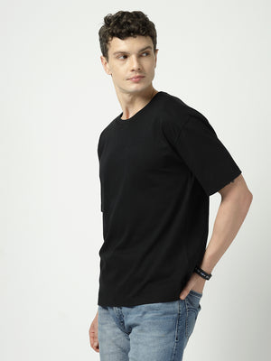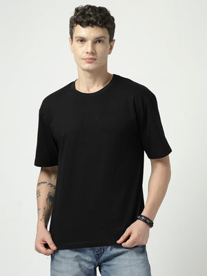 Fiery Red Moon Men’s Solid Black T-Shirt