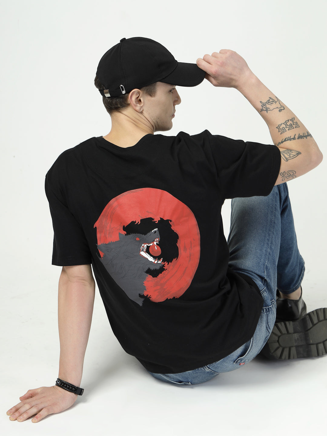 Unleash your inner power with this black oversized t-shirt featuring an expressive wolf graphic set in a fiery red moon. Crafted from 100% premium cotton, it offers all-day comfort with a statement-making edge. The bold back print embodies freedom, rebellion, and self-discovery—perfect for those who rise even when the world sleeps.