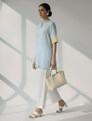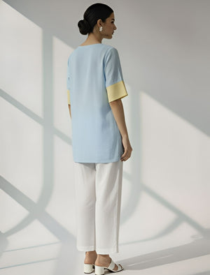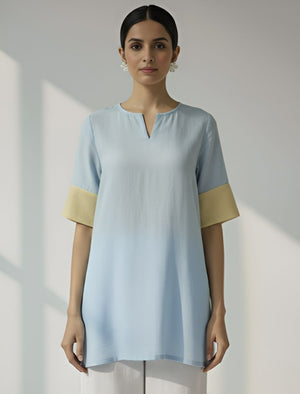 Half-Sleeve Kurti in Sky Blue & Lemon Yellow