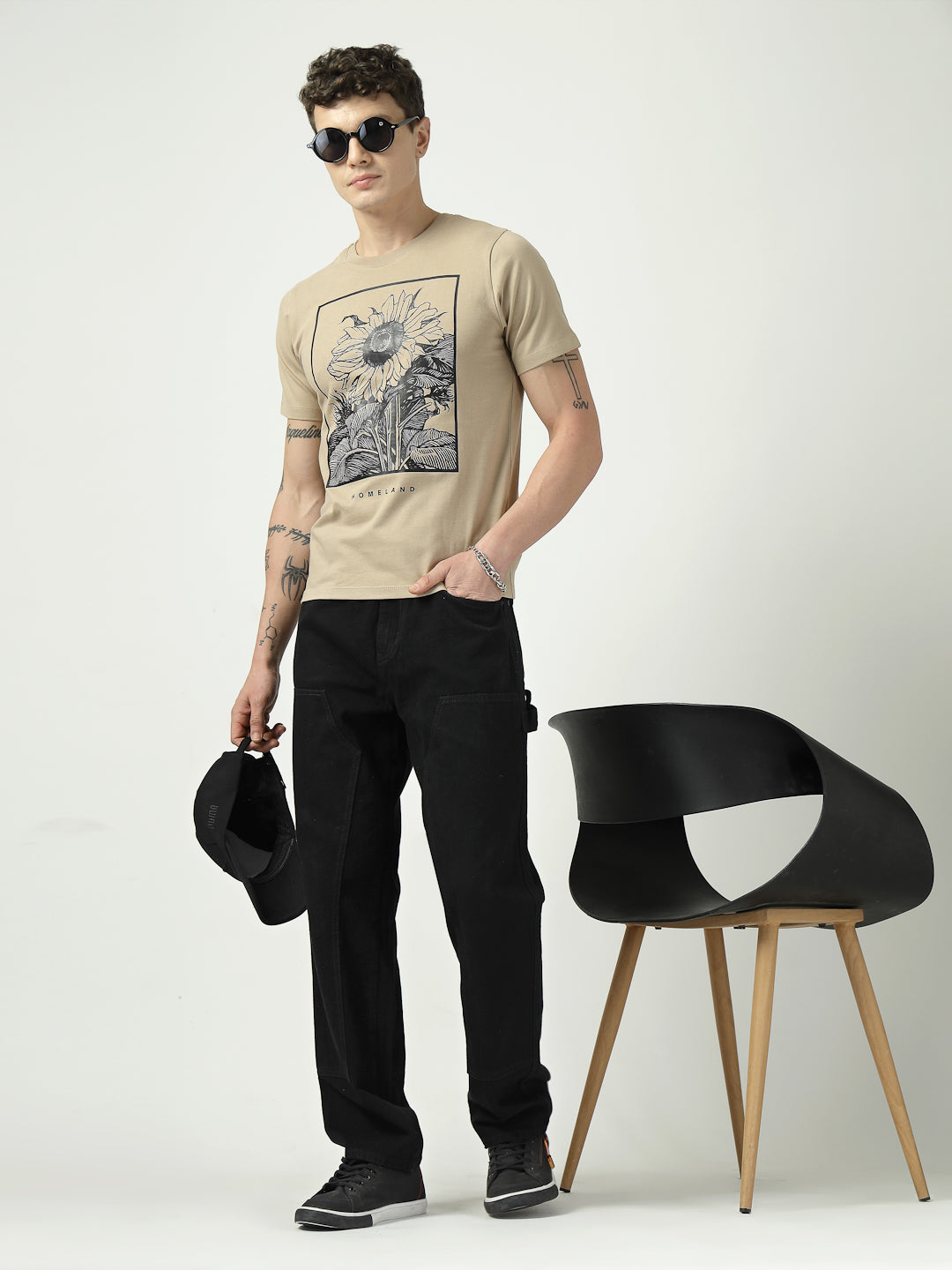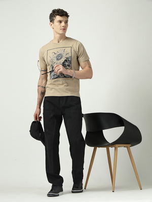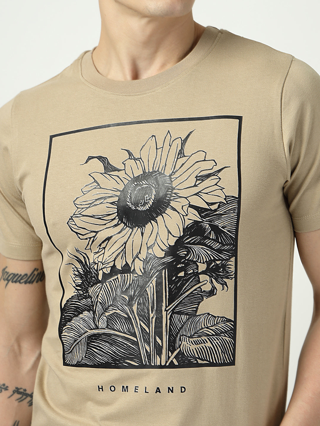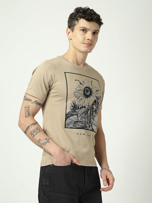 Home Men’s Beige Graphic T-Shirt | Homeland Sunflower Print | 100% Cotton Casual T-Shirt for Men