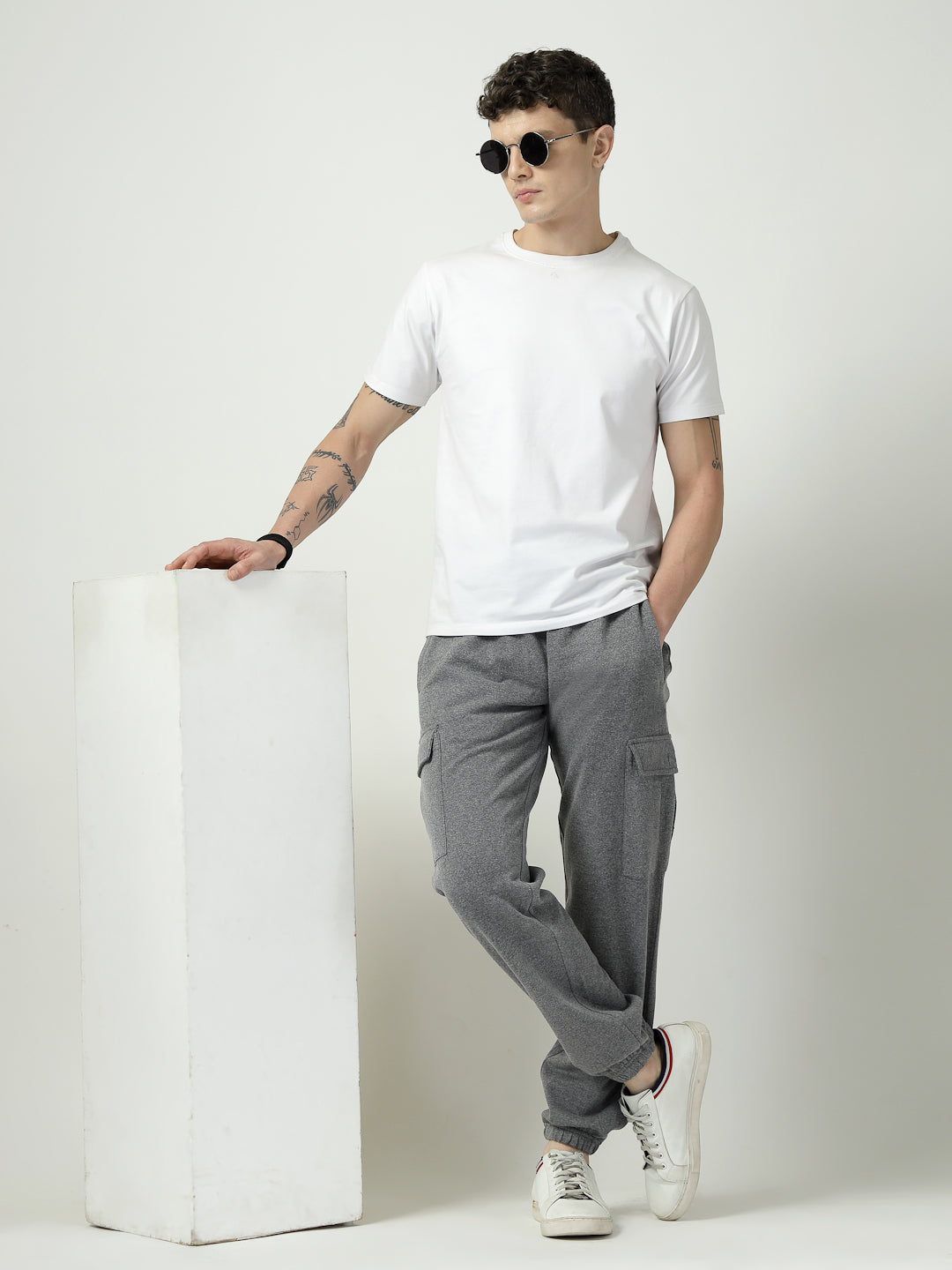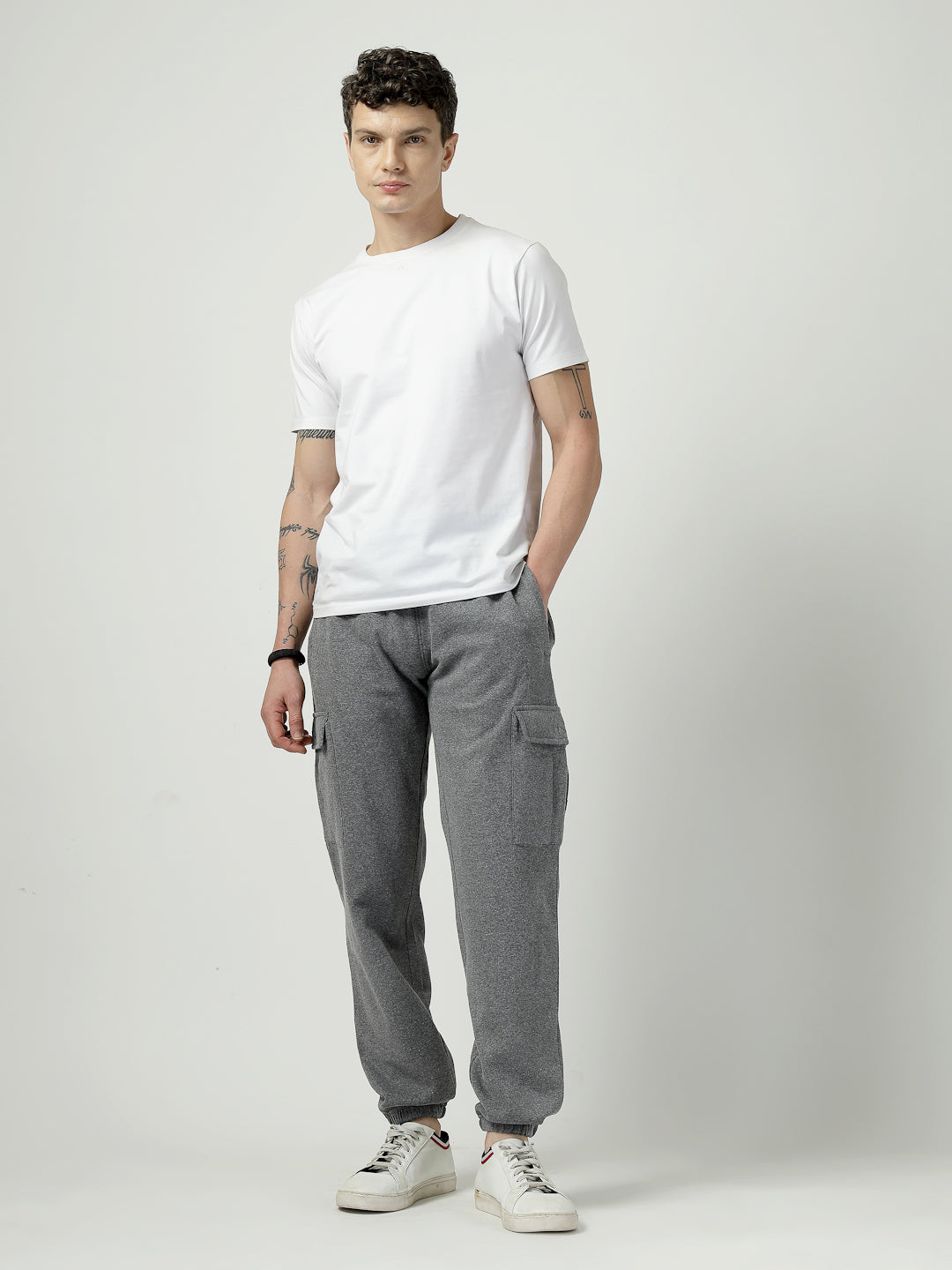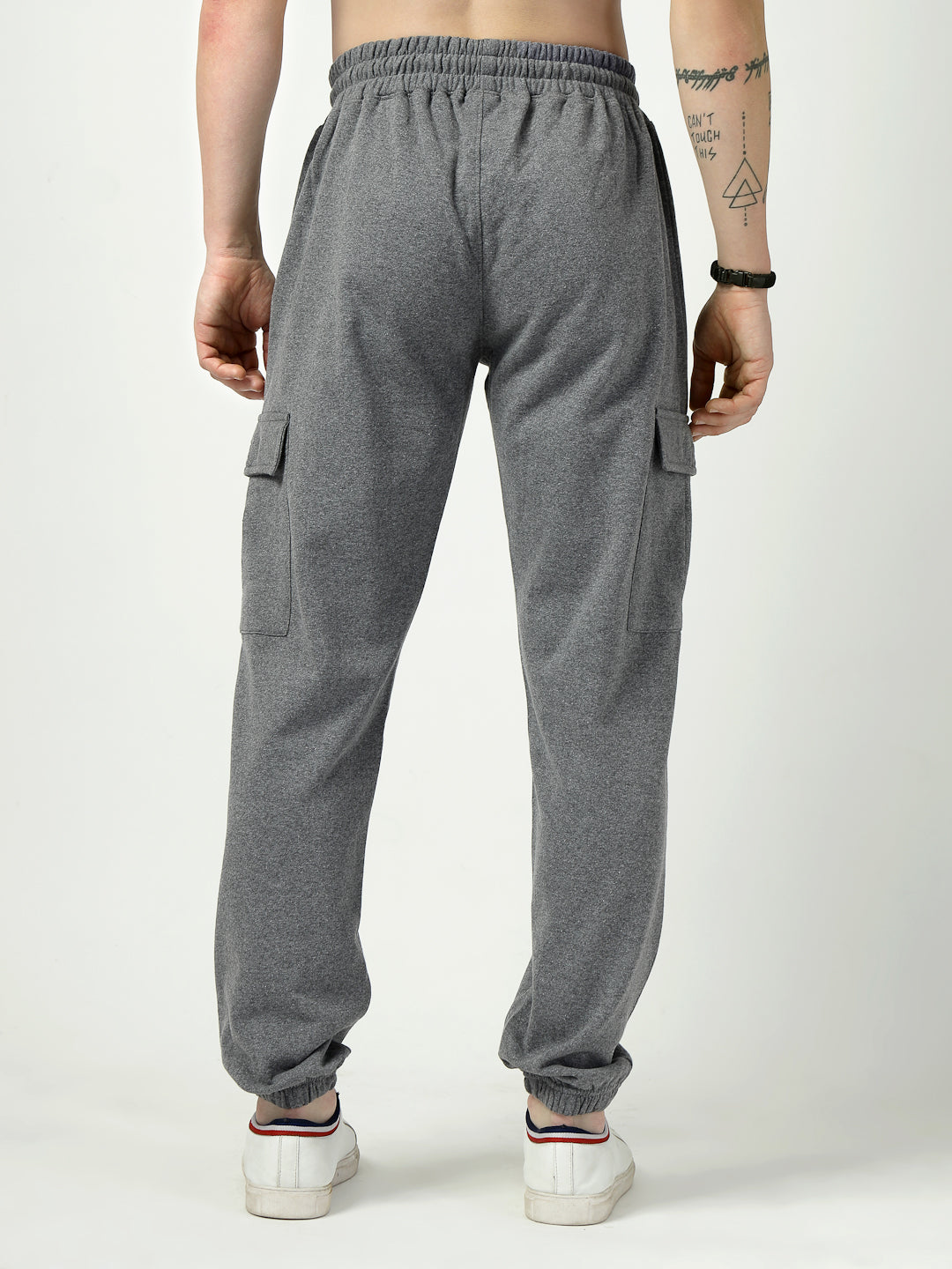 Comfort meets functionality with these charcoal grey fleece joggers, designed with utility cargo pockets for a modern streetwear look.