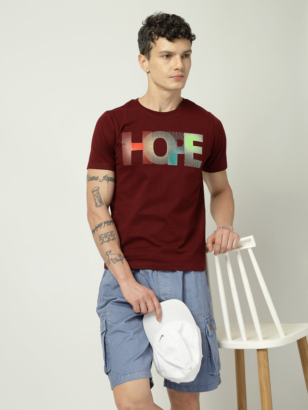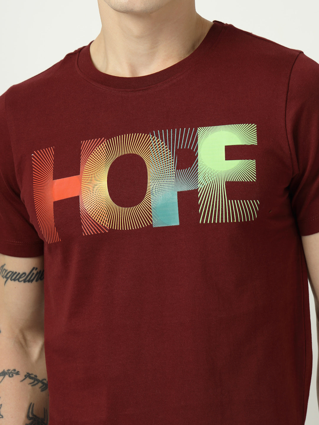Men’s Maroon HOPE Graphic Printed T-Shirt