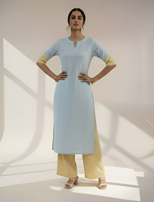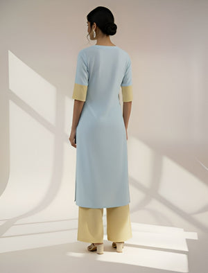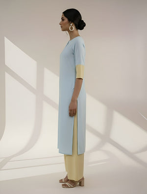 Sky Blue & Butter Yellow Cotton Kurta Set with Elegant Design