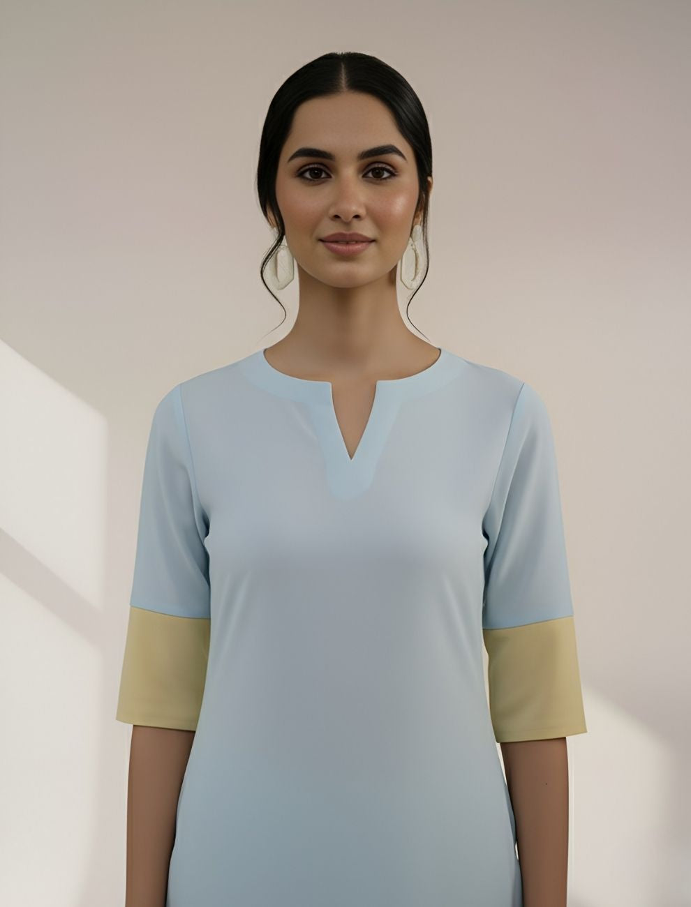 Calm, refined, and effortlessly graceful — this Sky Blue & Butter Yellow Cotton Kurta Set by Unifringe celebrates the purity of minimal design and mindful living.