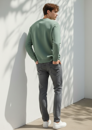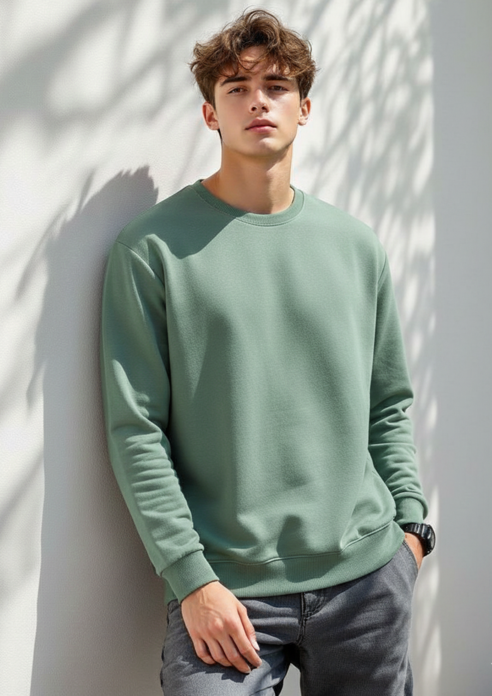 This men’s fleece sweatshirt features a minimal, plain design with a comfortable regular fit, making it perfect for casual wear, travel, and layering during colder days. The soothing sage green shade adds a fresh and premium look, making this plain fleece sweatshirt for men easy to pair with jeans, joggers, or trousers.