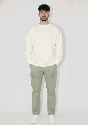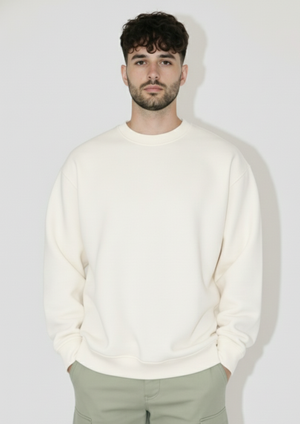 This men’s fleece sweatshirt features a minimal, plain design with a comfortable regular fit, allowing easy movement and all-day comfort. The off-white shade gives a versatile and premium look, making this plain fleece sweatshirt for men easy to style with joggers, cargo pants, or denim for casual and streetwear outfits.