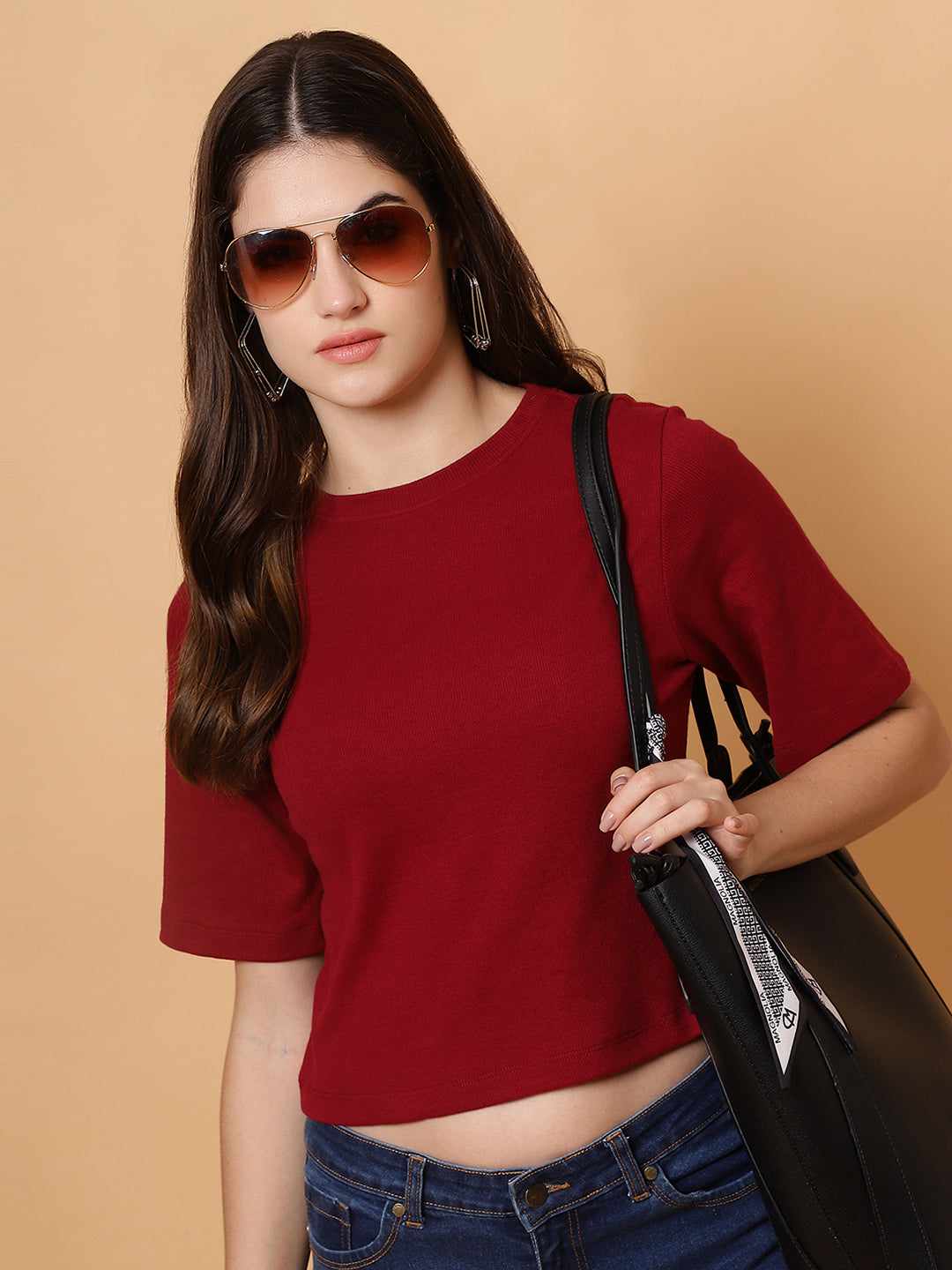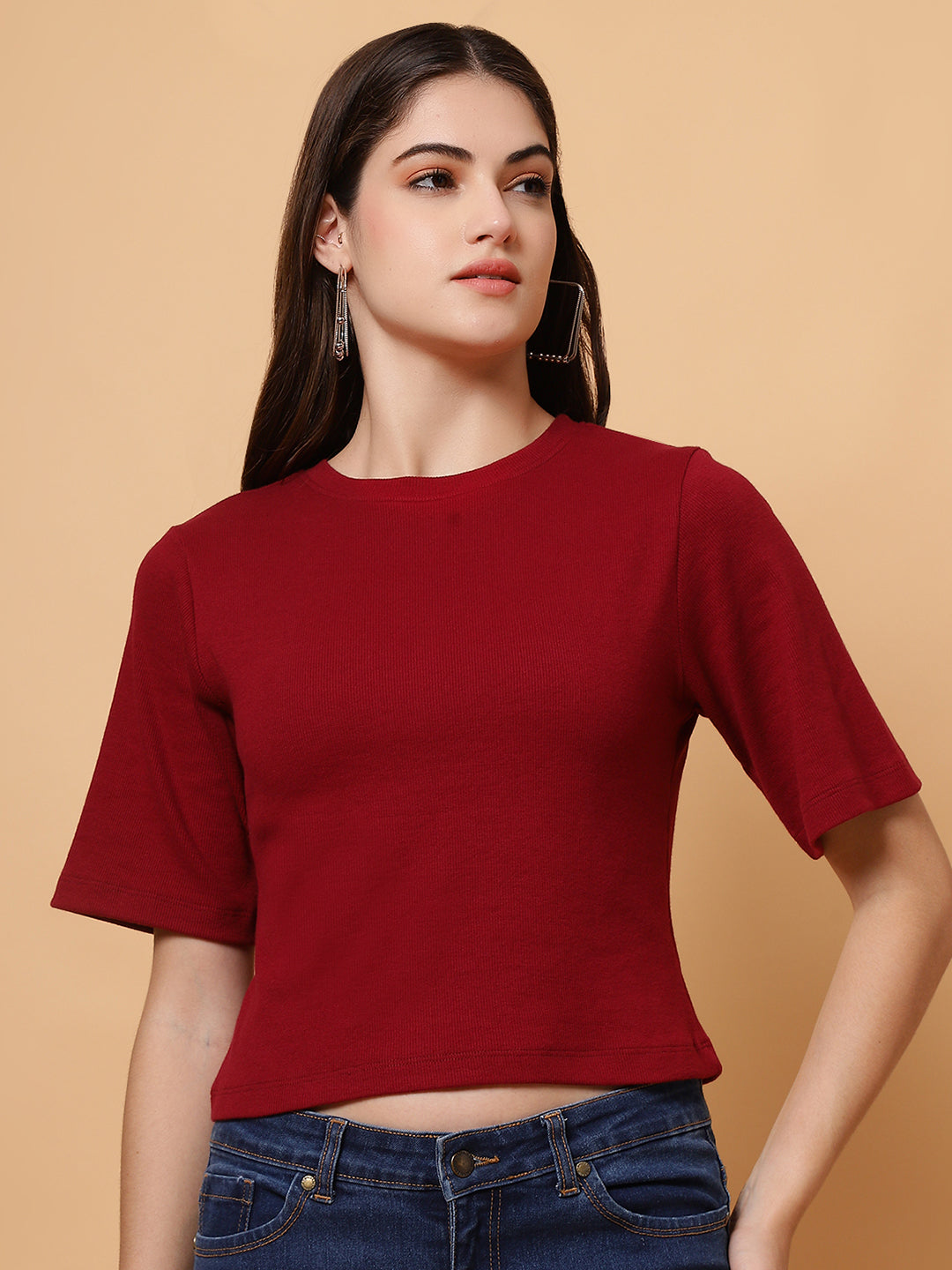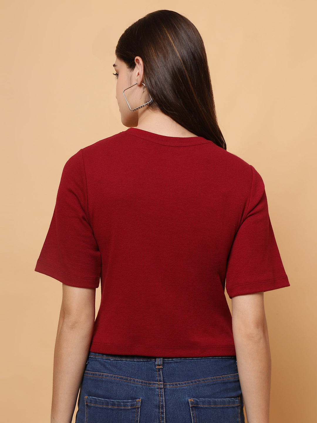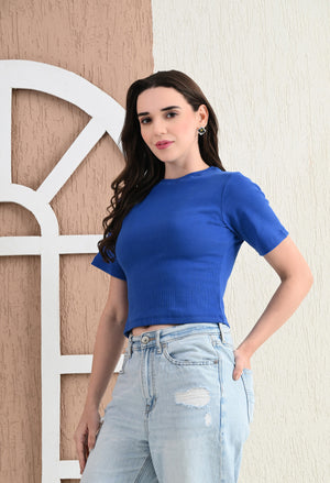 Upgrade your wardrobe with the Unifringe Women’s Ribbed Cropped Top, available in two stunning colors: black and maroon. Crafted from premium ribbed fabric, this top provides a soft, stretchy, and comfortable fit for all-day wear. The minimalist round-neck design with half sleeves adds elegance, while the cropped length ensures a trendy look. Perfect for pairing with high-waisted jeans, skirts, or shorts, this top is a versatile addition to your casual or layered outfits.