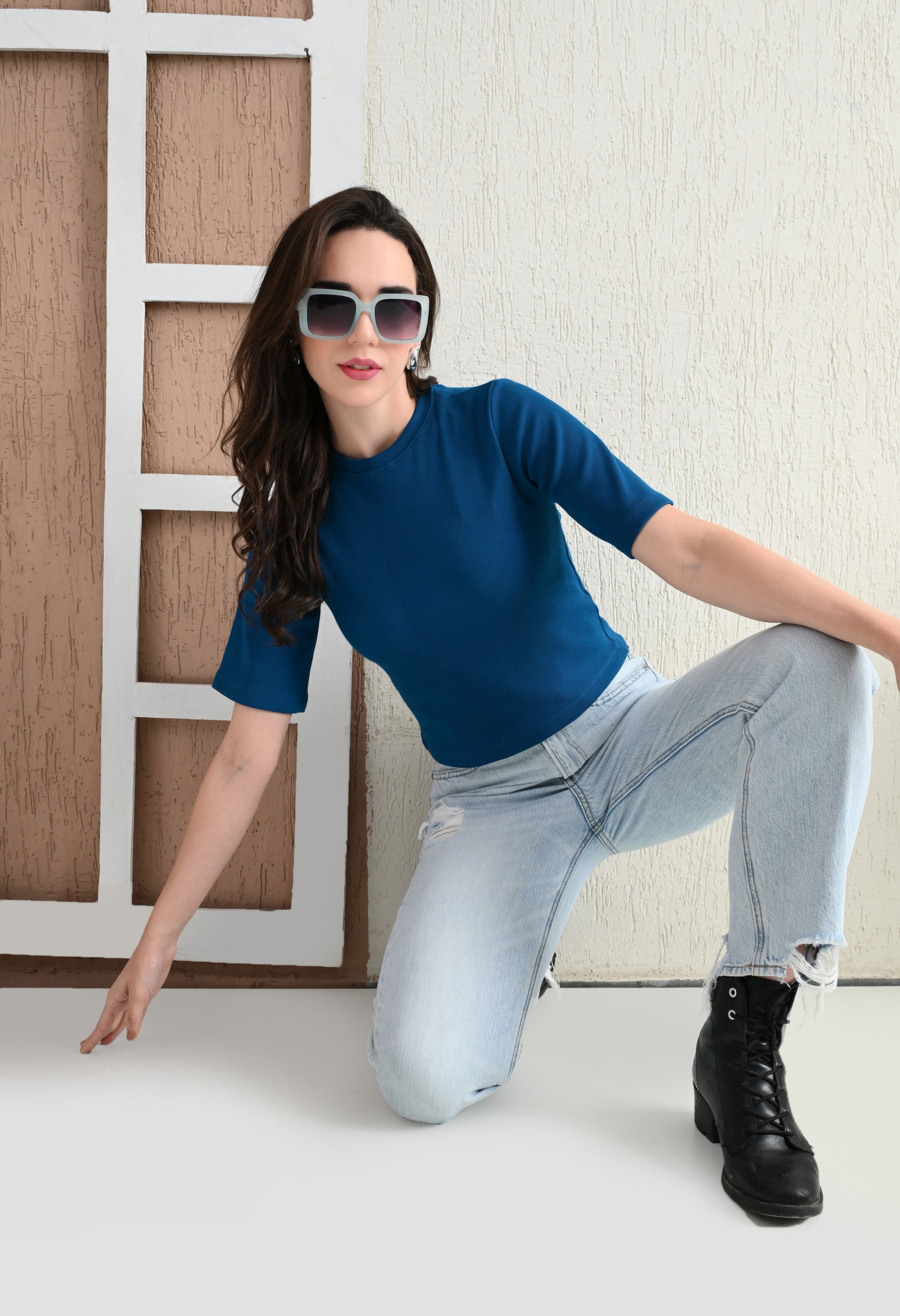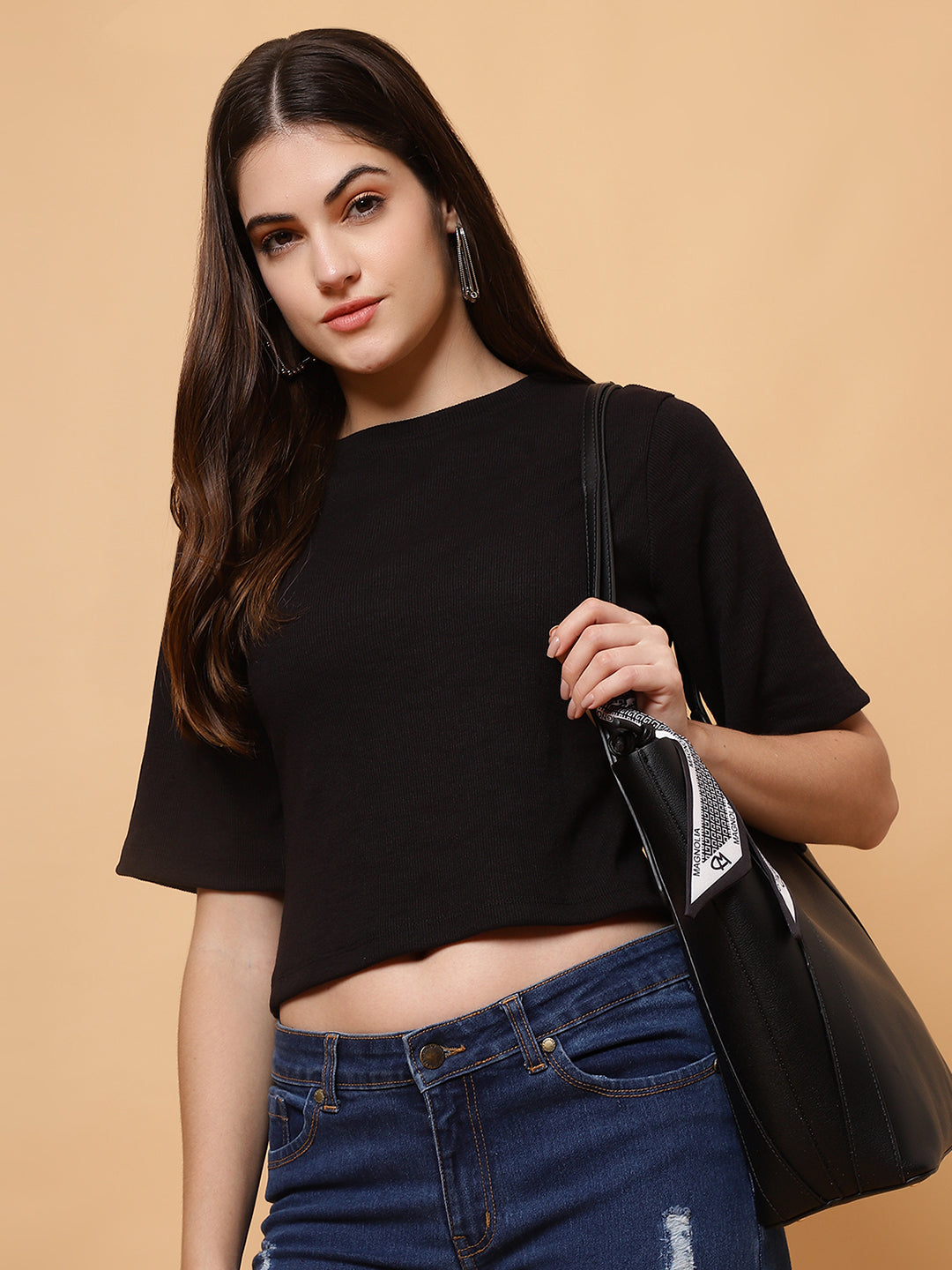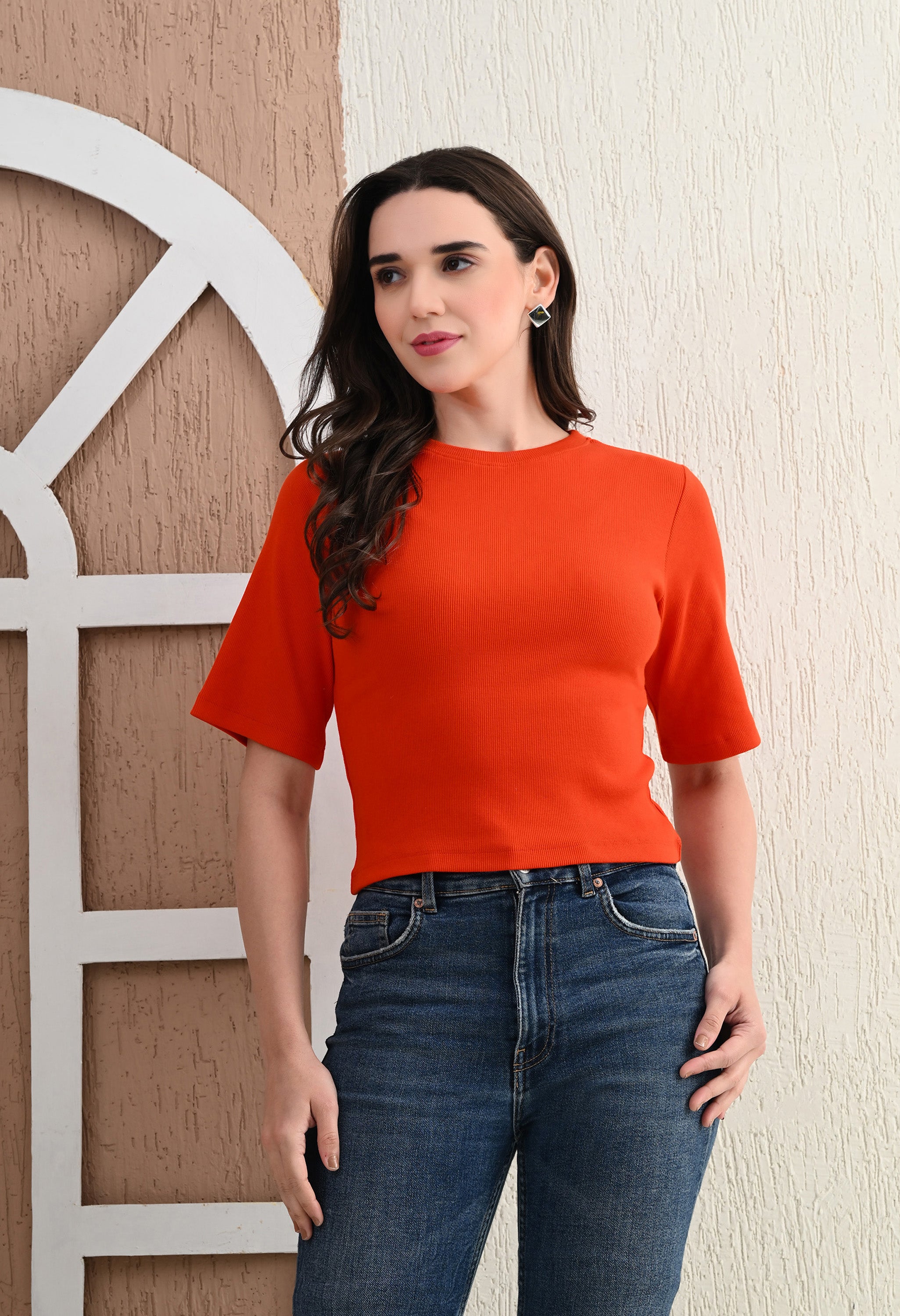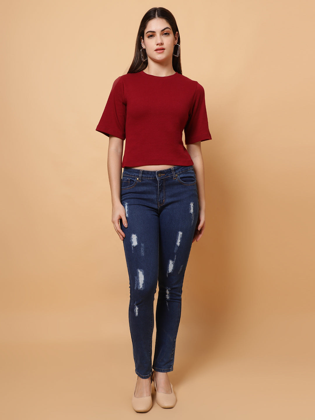 Upgrade your wardrobe with the Unifringe Women’s Ribbed Cropped Top, available in two stunning colors: black and maroon. Crafted from premium ribbed fabric, this top provides a soft, stretchy, and comfortable fit for all-day wear. The minimalist round-neck design with half sleeves adds elegance, while the cropped length ensures a trendy look. Perfect for pairing with high-waisted jeans, skirts, or shorts, this top is a versatile addition to your casual or layered outfits.