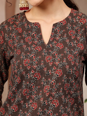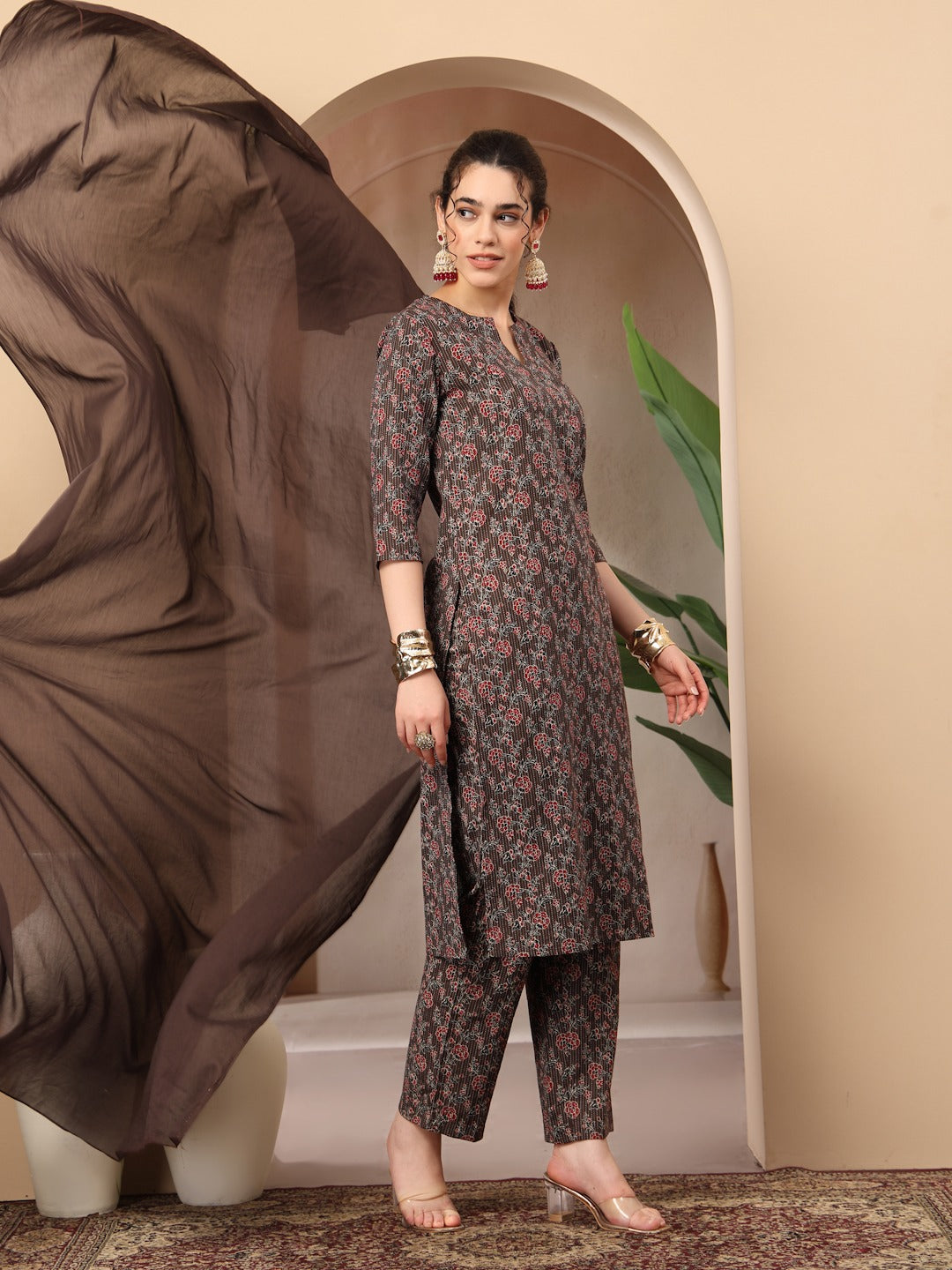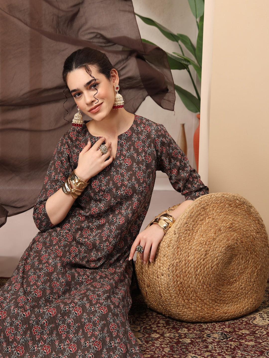 Home Women’s Printed 100% Cotton Kurti 3-Set – Elegant Ethnic Style