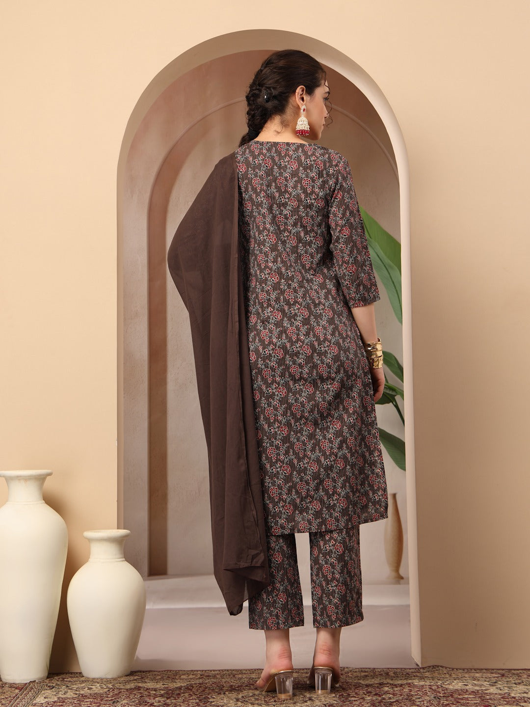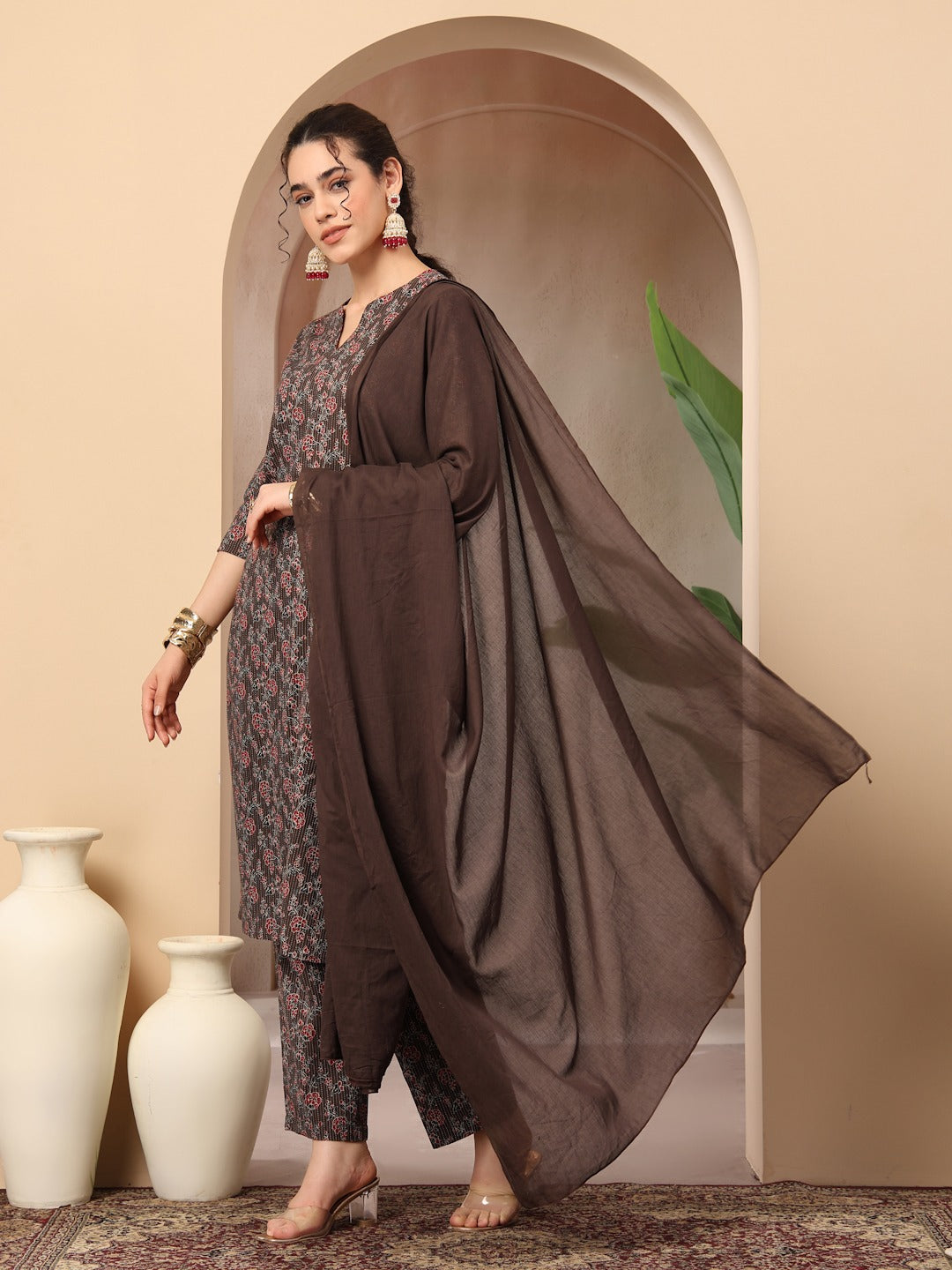 Women’s printed 3-set kurti made from 100%cotton fabric. Comfortable, breathable, and stylish ethnic wear by Unifringe.