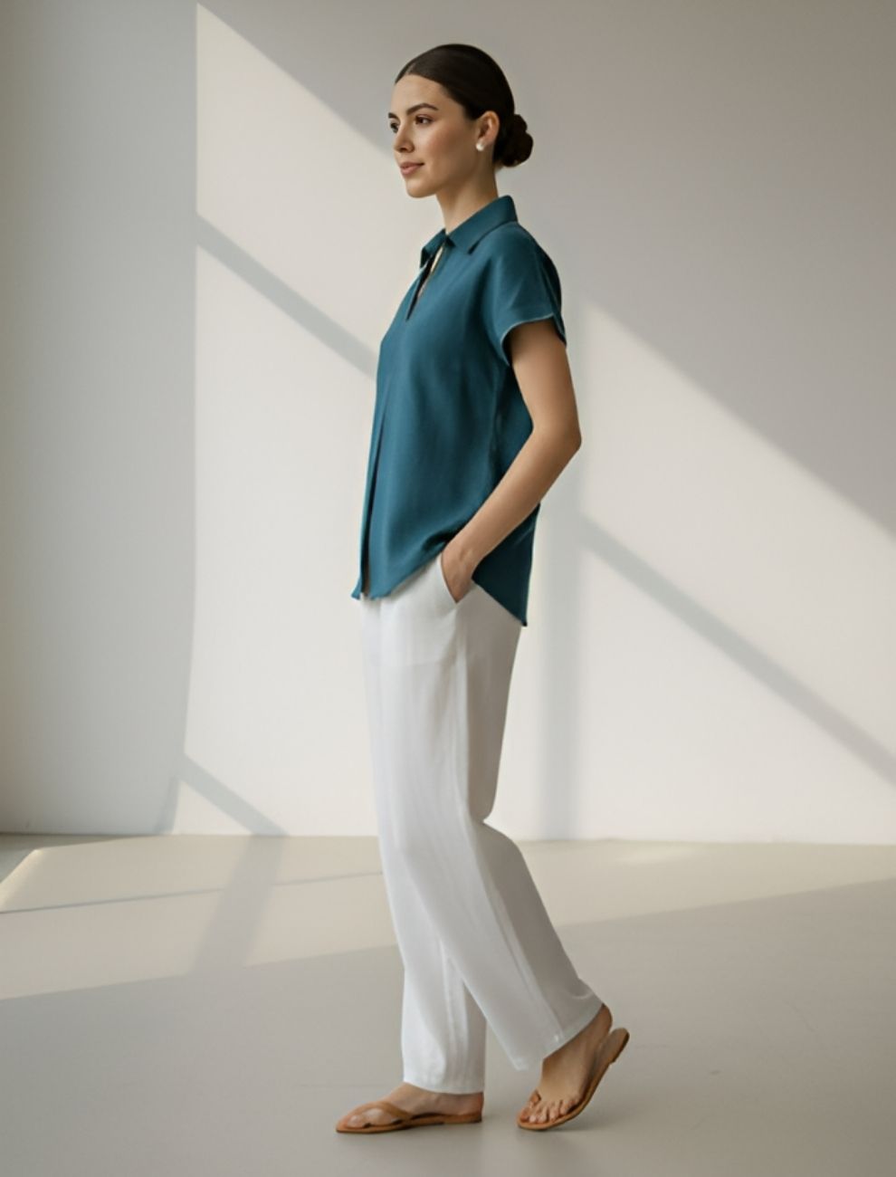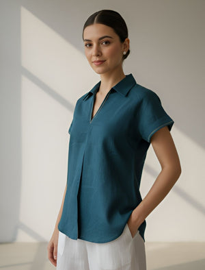 Step into refined comfort with this cotton flex top, designed for women who love timeless style and breathable fabrics. Crafted from premium cotton flex, this top combines the softness of cotton with a structured yet airy texture — perfect for warm days and long hours.